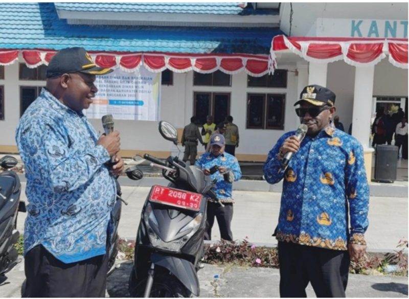 Deiyai, (Terangbebeke.com)- Bupati Deiyai, Melkianus Mote, ST, komitmen Pemerintah Kabupaten Deiyai dalam meningkatkan kinerja ASN melalui dukungan sarana operasional, seperti penyerahan sejumlah kendaraan roda dua dan roda empat kepada beberapa Organisasi Perangkat Daerah (OPD), Jumat (17/10/2025).