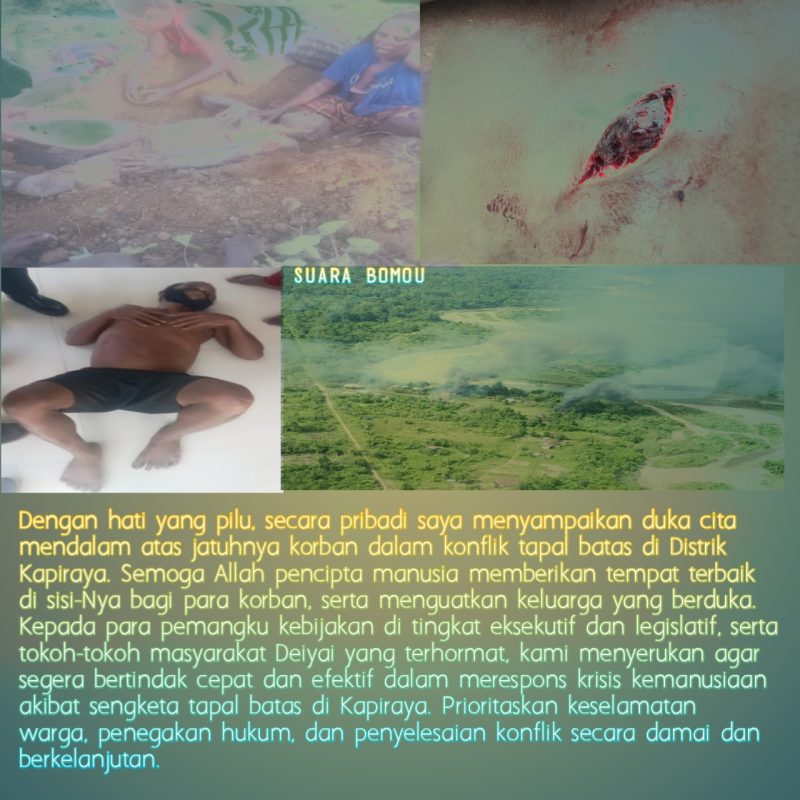 Deiyai , 25/11/2026 – Sengketa tapal batas di Distrik Kapiraya, Kabupaten Deiyai kembali pecah pada Senin, 24 November 2025, mengakibatkan seorang warga tewas dan beberapa lainnya mengalami luka-luka serius.